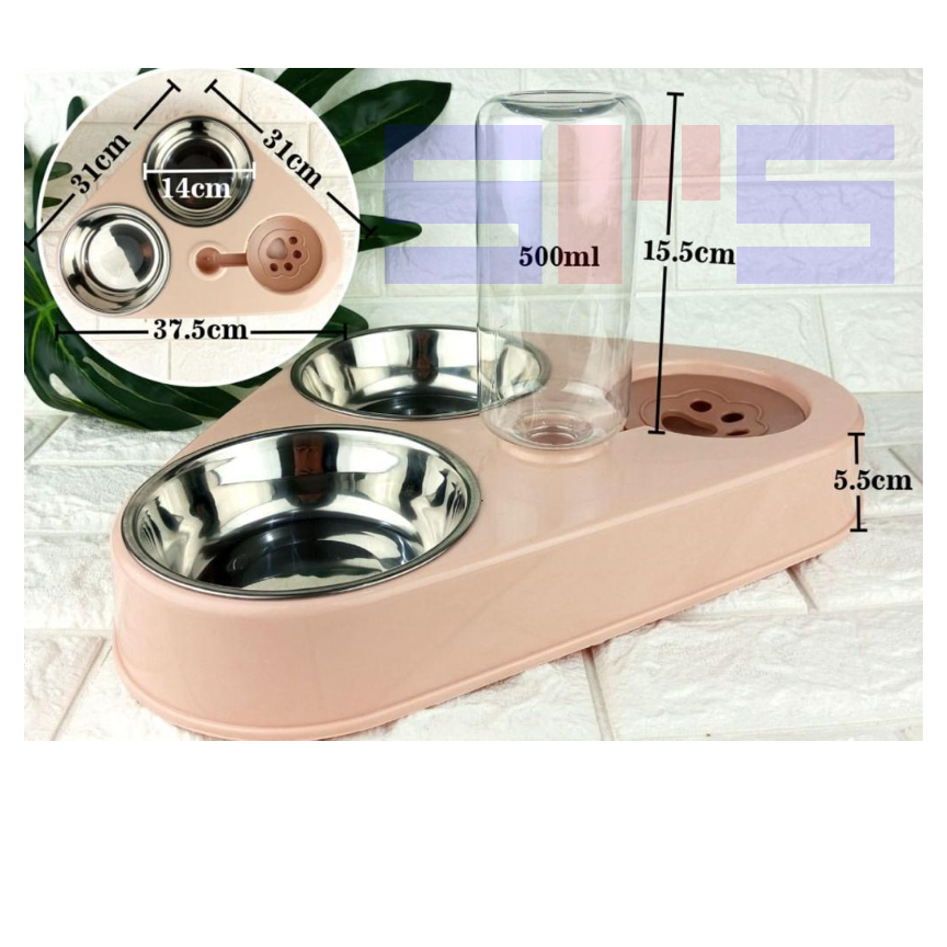 Tempat Makan Minum Kucing Anjing Mangkok Botol Pet Two Bowl Stainless